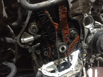 посторонний шум двигателя при нажатии на педаль газа. Растянута цепь ГРМ, гидронатяжитель цепи вышел полностью. Фазовращатель (фазорегулятор) впускного распредвала имеет большой люфт, что привело к ошибке P0341.